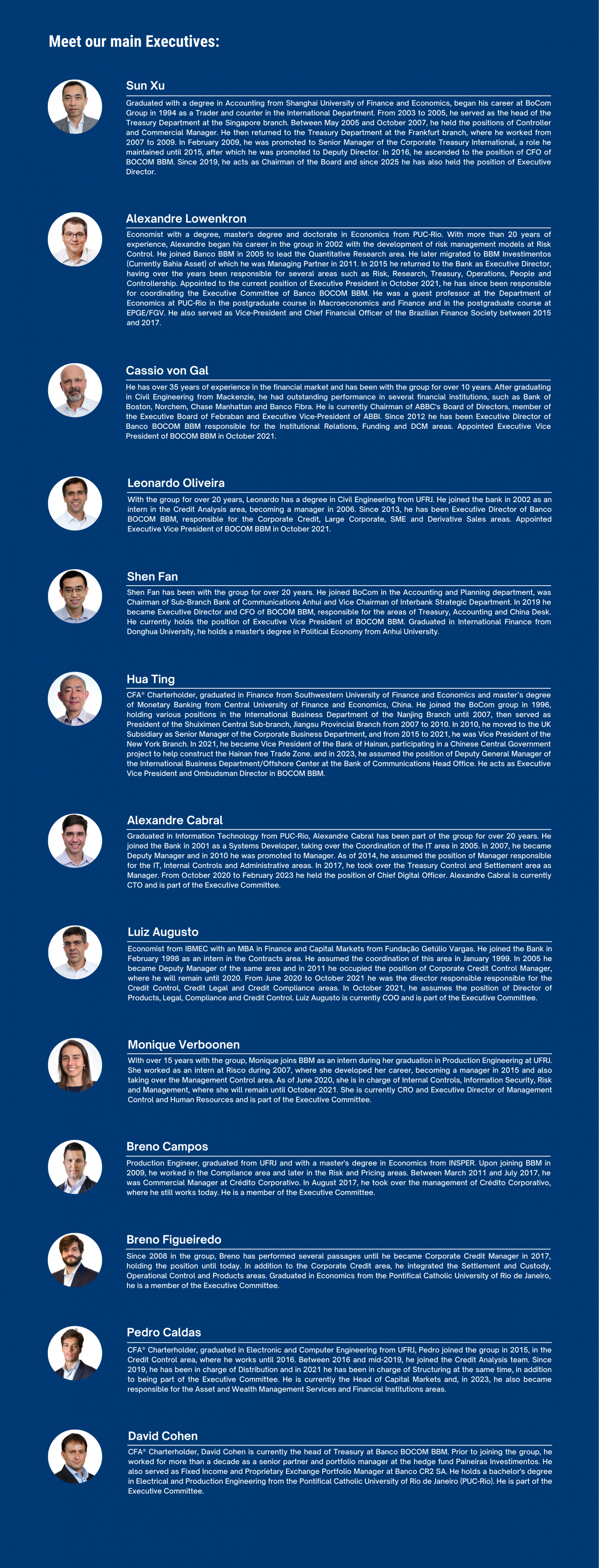 The Executive Committee comprises officers responsible for management in all areas and for implementing the policies and general guidelines established by the Board of Directors.